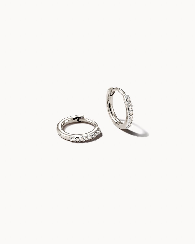 Mila 14k White Gold Huggie Earrings in White Diamond