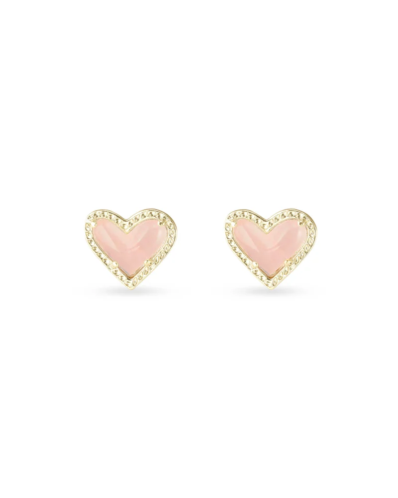 Ari Heart Gold Stud Earrings in Rose Quartz