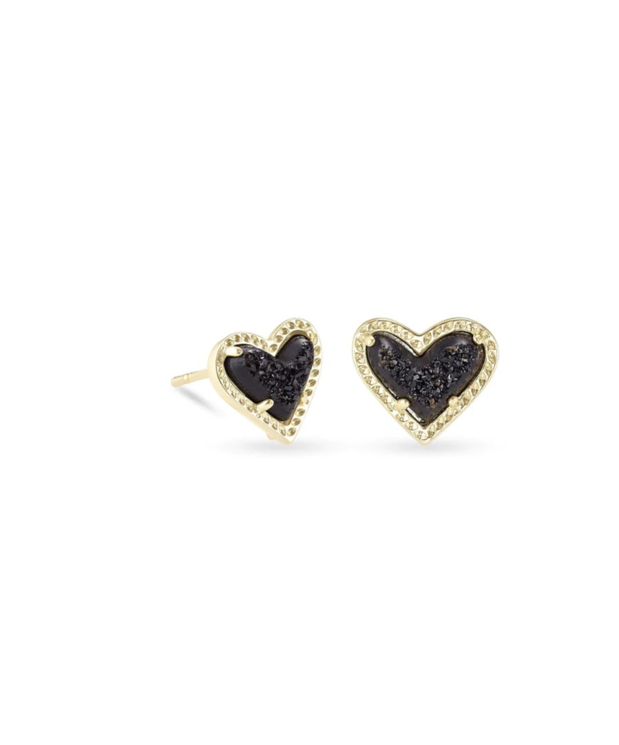 Ari Heart Gold Pendant Earrings in Black Drusy