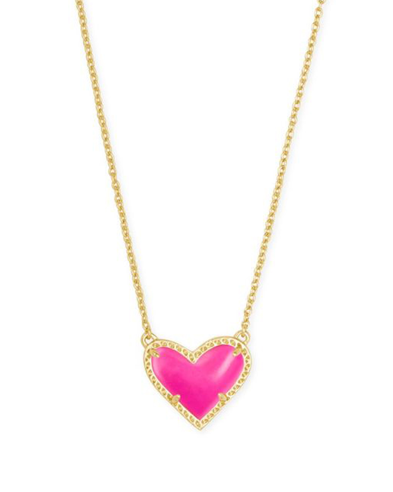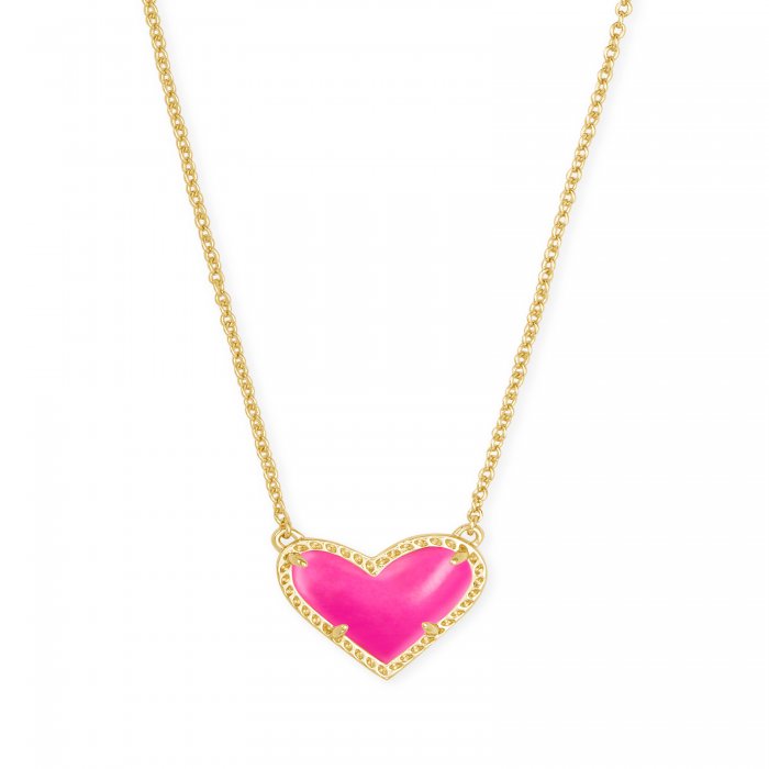 Ari Heart Gold Pendant Necklace in Neon Pink Magnesite