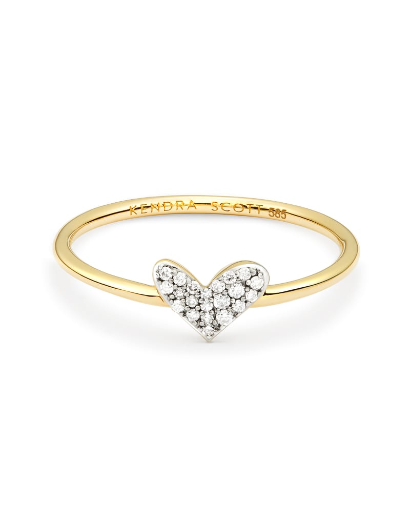 Heart 14k Yellow Gold Band Ring in White Diamond